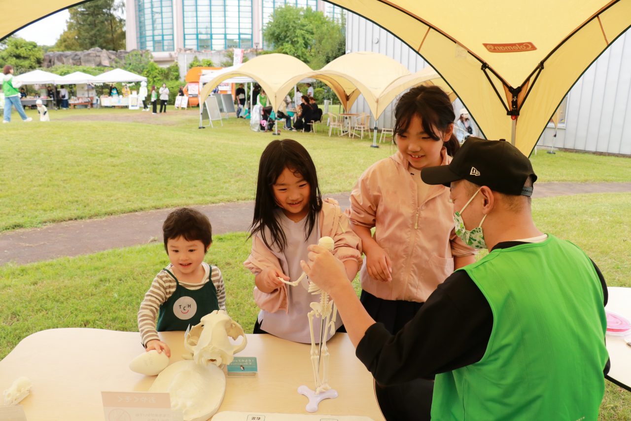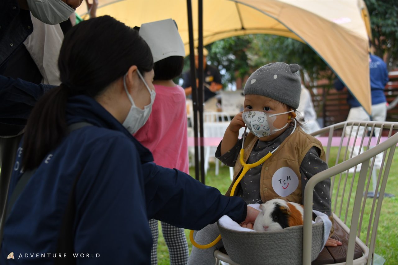 昨年も行った、ダンスパフォーマー体験に加え、今年は中学生以上のこどもたちが物販の販売スタッフとして参加するために事前の研修を行ってくださったり、動物ふれあいでは聴診体験もできるようにしていただきました。
